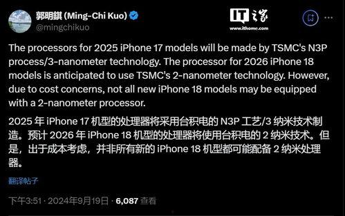 你听说了吗?最近关于苹果17系列处理器的最新爆料可是炸开了锅!作为科技爱好者,我可是迫不及待地要和你分享一下这些激动人心的消息。让我们一起揭开这神秘的面纱,看看苹果这次又给我们带来了哪些惊喜吧!
